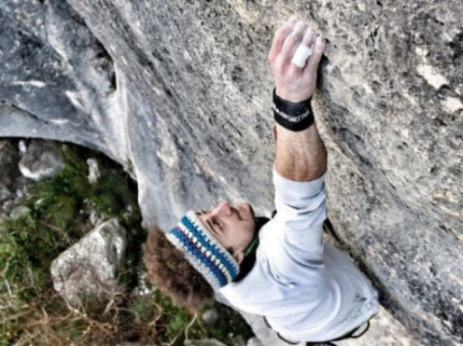 "Sometimes I have really dry and glassy skin, FL helps me to still get some good grip, especially on slippery holds. FL is also really good for longer climbs because it stays longer on your fingers as normal chalk." Photo: Damien Largeron
